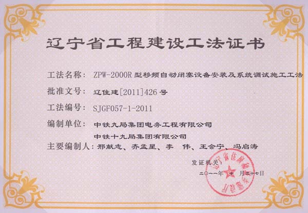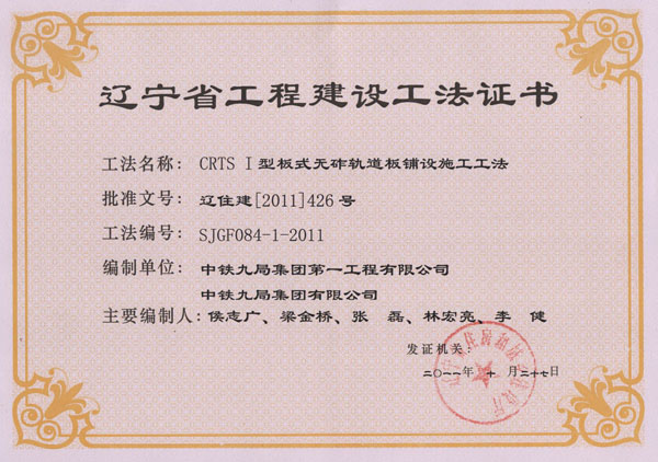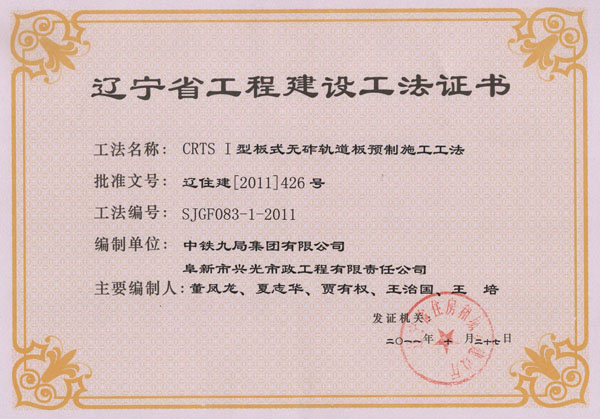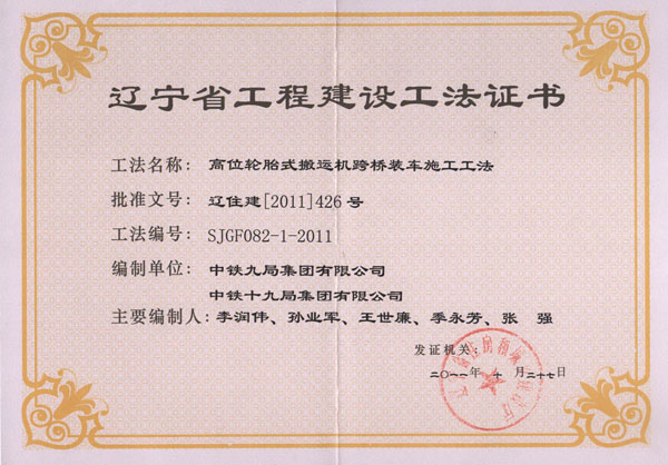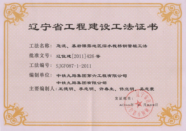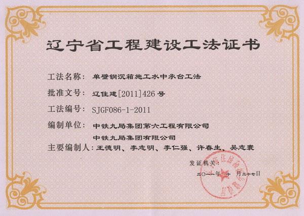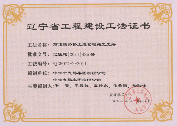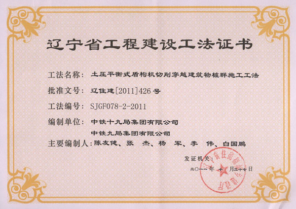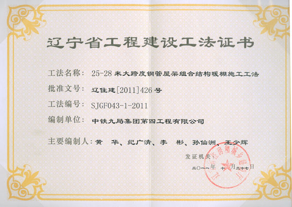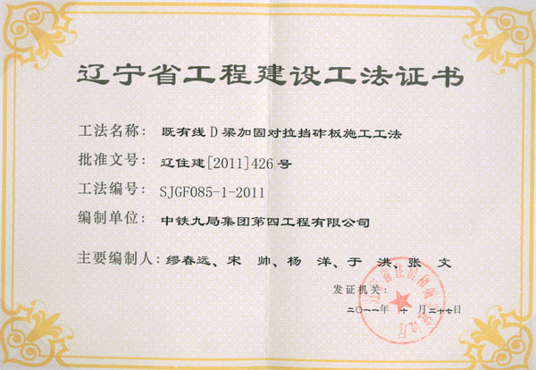 省级工法证书(2011年)