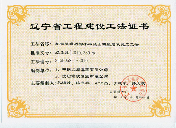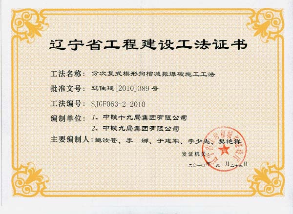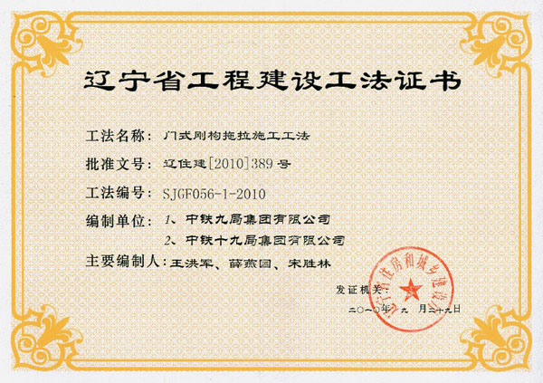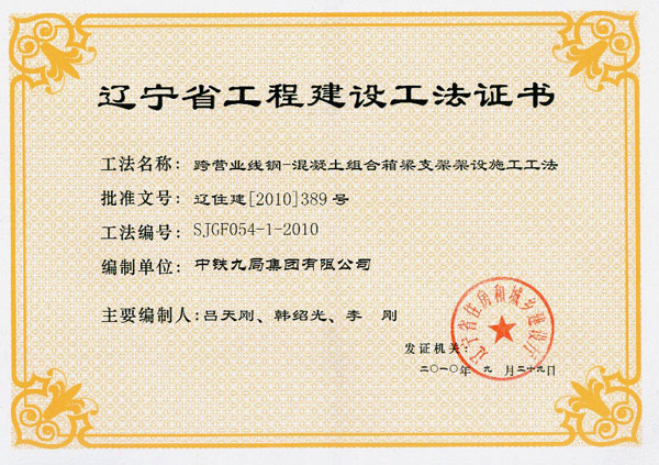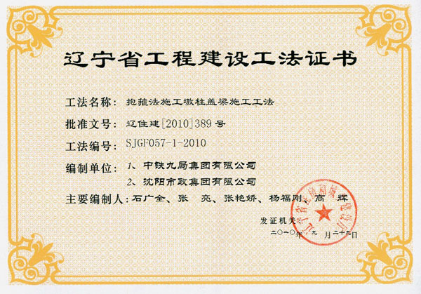 省级工法证书(2010年)