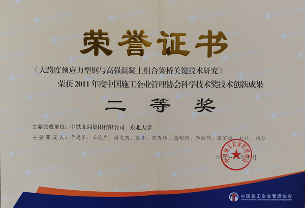 大跨度预应力型钢与高强混凝土组合梁桥关键技术研究 二等奖