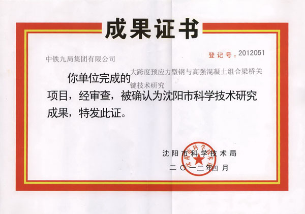 大跨度预应力型钢与高强混凝土组合梁桥关键技术研究沈阳市科技成果
