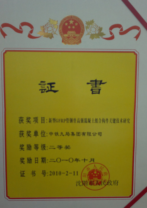 新型GFRP钢管骨高强混凝土组合构件关键技术研究二等奖