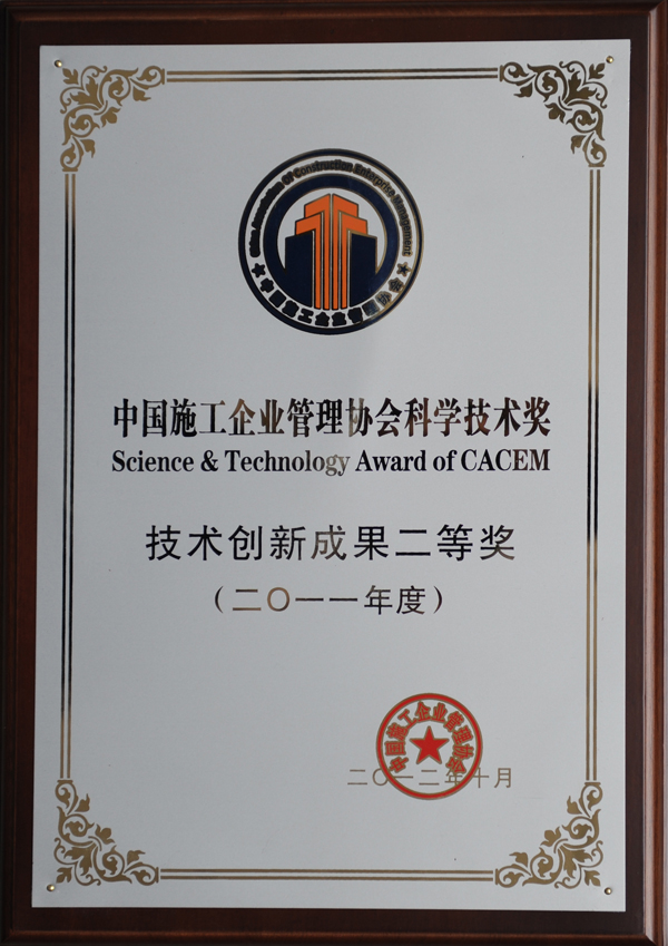 中国施工企业协会技术创新成果二等奖二零一一年度