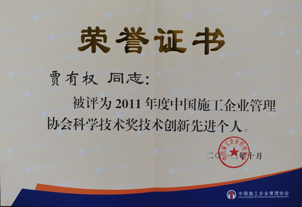 2011中国施工企业管理协会科学技术奖技术创新先进个人