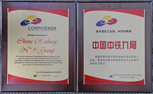 委内瑞拉科技部、工业部向我局赠送牌匾