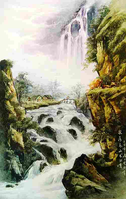 泉落青山出白云(国画)