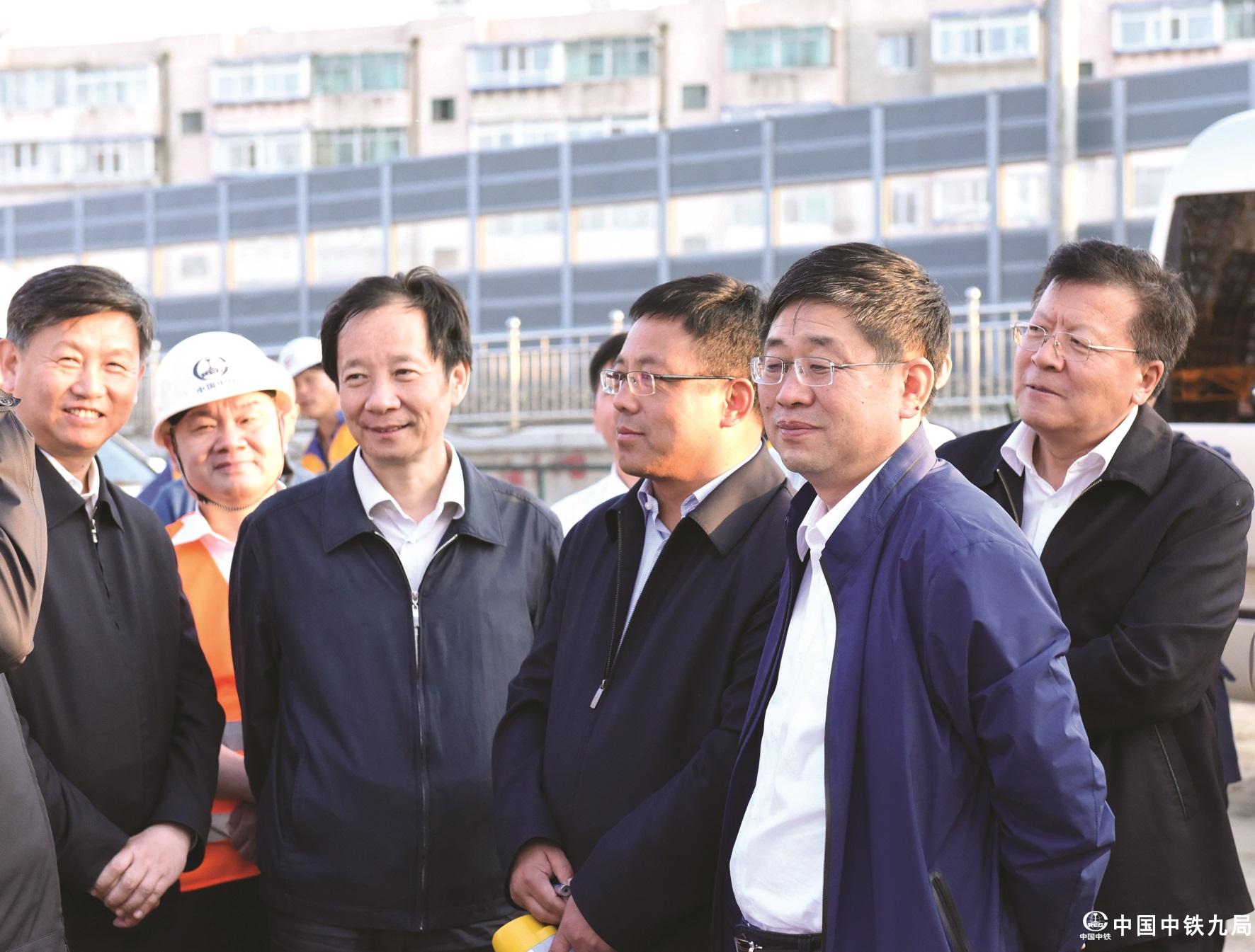 5月15日,中国铁路总公司副总经理王同军(右二)到我局承建的京沈客专沈阳枢纽项目检查指导工作,对我局顺利实现秦沈客专转入秦沈便线行车节点工期目标给予肯定。局总经理赵中华陪同。